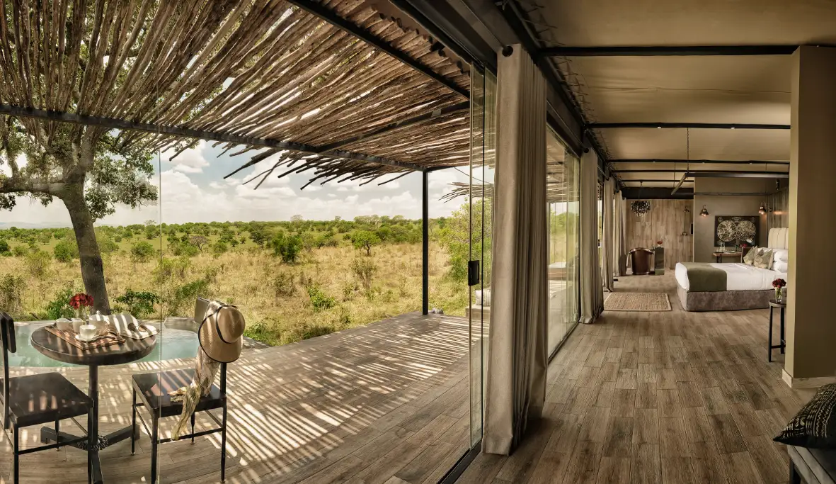 This boutique tented camp offers a sense of refined beauty and is elegantly designed with modern and organic furnishings. Every suite has a private deck with a swing bed and is purposefully placed to capture the best views of the plains. A large copper bathtub, with a window that opens out into the savannah, brings a high degree of intimacy to nature that heightens the sights, smells and sounds of the bush. The lounge and dining area promise spectacular views of the endless plains and an infinity pool is set within a jagged natural cave overlooking the vast landscape, where resident wildlife regularly pass by. With its seamless combination of luxury safari and outdoor connection with nature, Nimali Mara ensures guests are offered a captivating escape from the world and a tranquil retreat in the heart of the African bush.