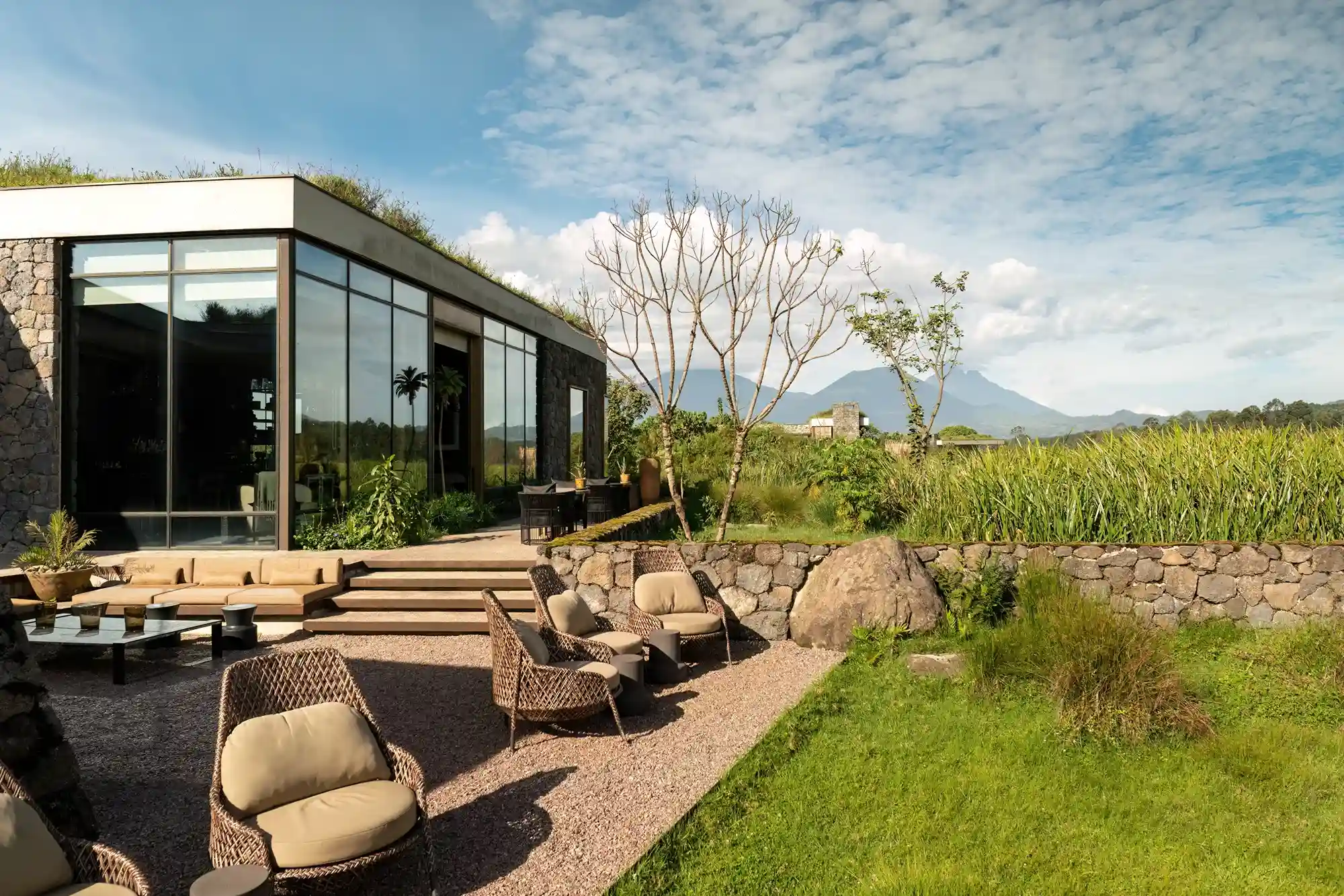 Sustainability also shines through the construction of the lodge. Woven ceilings and hand-fired terracotta brickwork, all locally crafted, make up the luxurious suites and villa, all complete with private plunge pool, spa treatment area and indoor and outdoor fireplaces. Breathtaking scenery can be enjoyed from everywhere in the lodge and guests will be hard-pressed to feel anything but deeply rejuvenated and transformed after their stay.