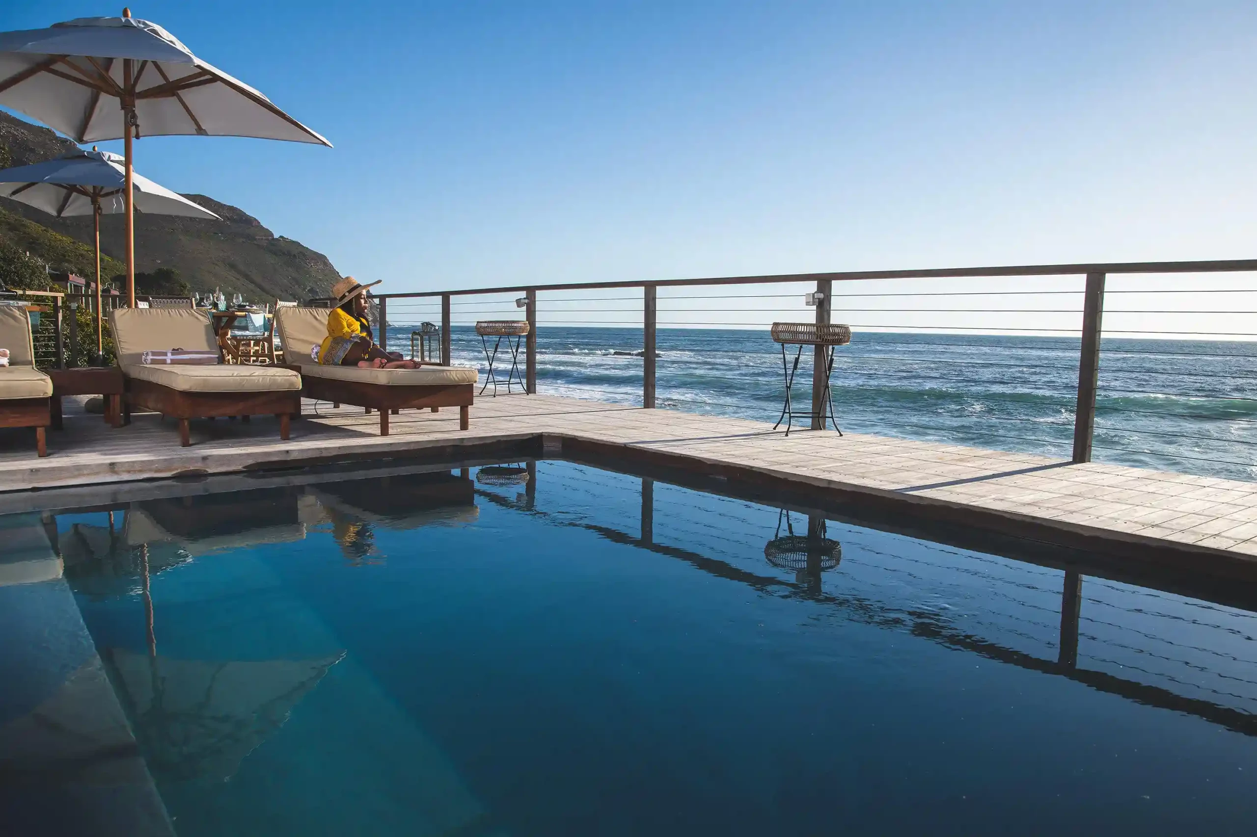 Tintswalo Atlantic is one of Cape Town’s most uniquely situated hotels. This renowned luxury boutique lodge lies nestled against the base of the iconic Chapman’s Peak mountains with dramatic views of the Atlantic Ocean and Sentinel mountain peak. You will be hard-pressed to find a more striking location.