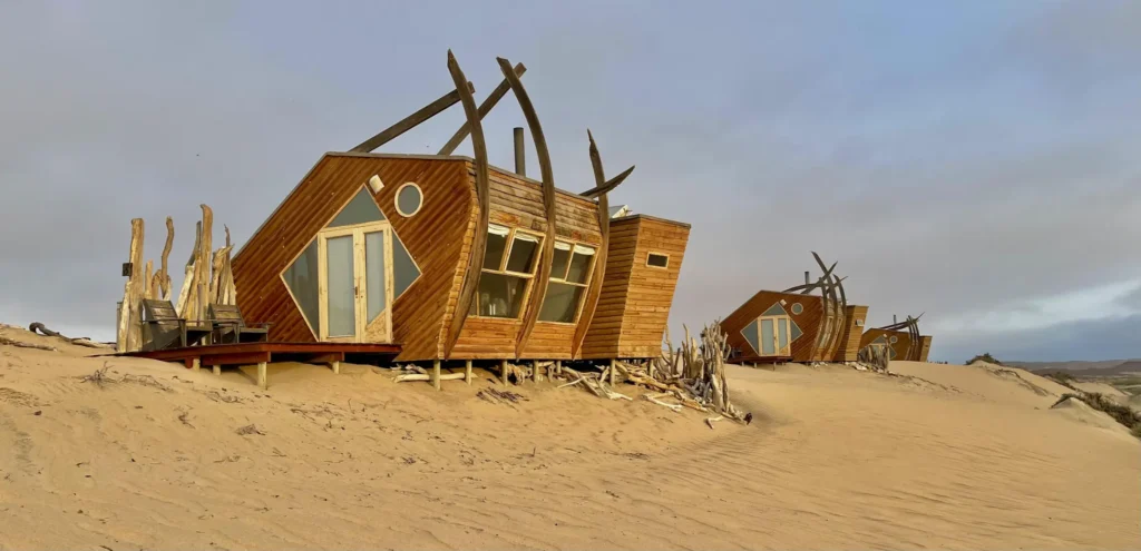 Shipwreck Lodge features uniquely designed luxury chalets, desert wildlife, and starlit solitude, in Namibia’s Skeleton Coast National Park.