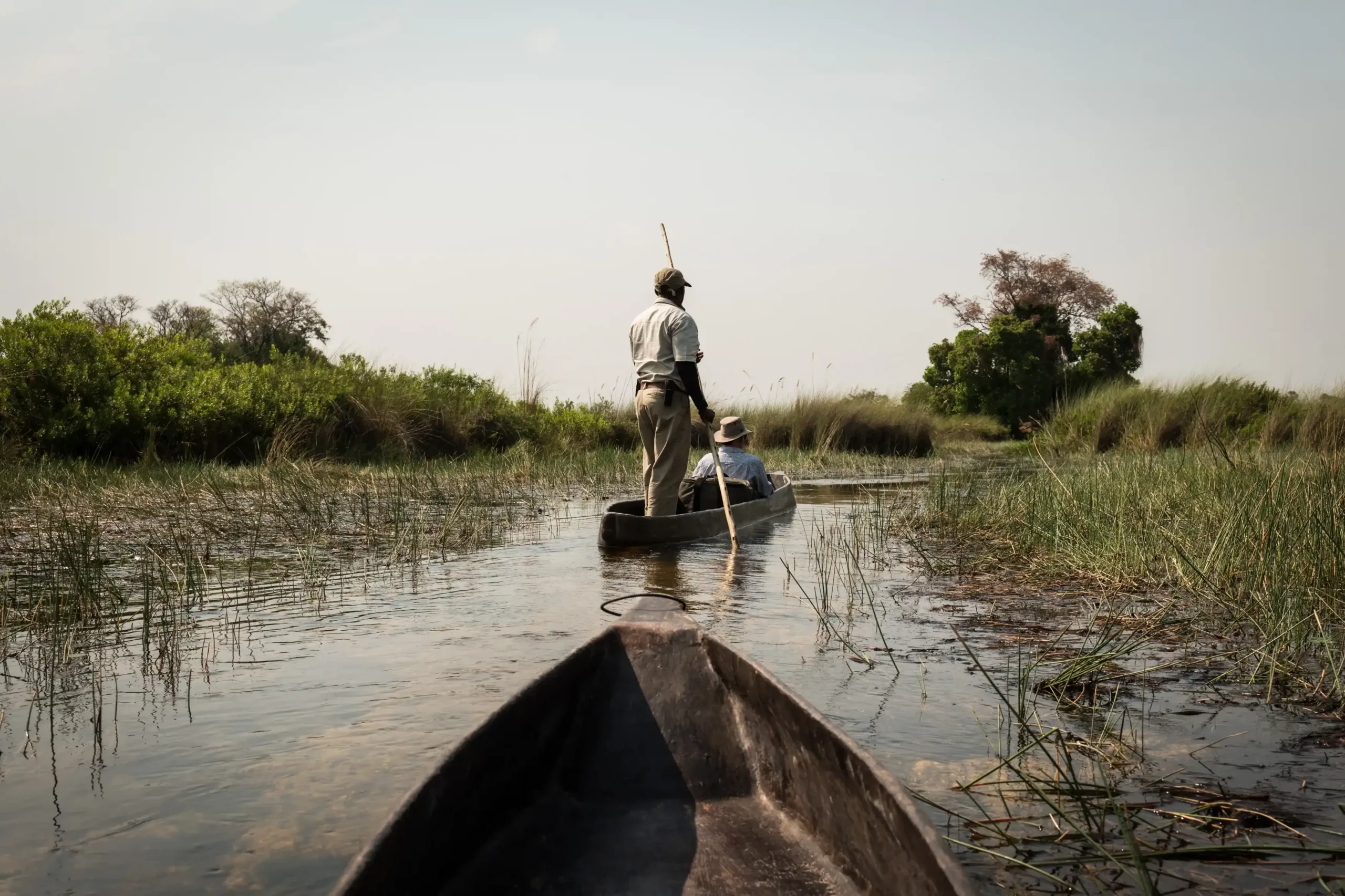Track wildlife on foot through remote concessions, guided by experts who read the land like a map. For a thrilling shift in pace, take to the wilderness on horseback, riding beside game across Botswana’s Okavango Delta, or over the shimmering salt pans of the Makgadikgadi. Drift silently through the Okavango Delta in a traditional mokoro, tracing hidden channels few ever see. Or rise with the sun on a hot air balloon safari, floating above wildebeest herds and acacia-dotted savannas. And for those drawn to the ultimate ascent, summiting Mount Kilimanjaro is a bucket-list triumph – a climb from rainforest to glacier, ending atop the Roof of Africa.